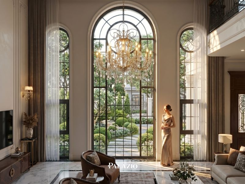 Nhờ đó, từng khu vực trong nhà đều có sự kết nối với bên ngoài. Một biệt thự tân cổ điển đẹp không chỉ nằm ở hình thức, mà còn ở cách ánh sáng làm sống động không gian.